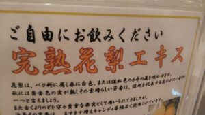 『花梨』という木が有名らしく、果実がジュースやお酒の原料になるらしいです。こちらの温泉冷たくて甘い花梨ジュースが飲み放題という太っ腹っぷり。