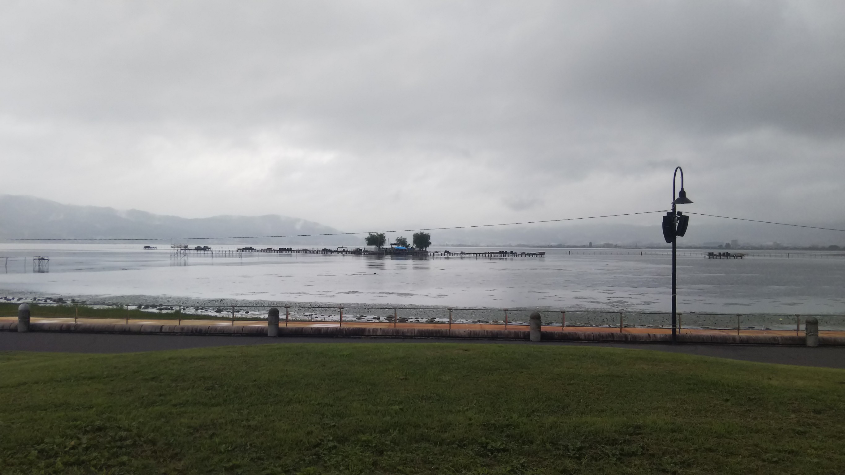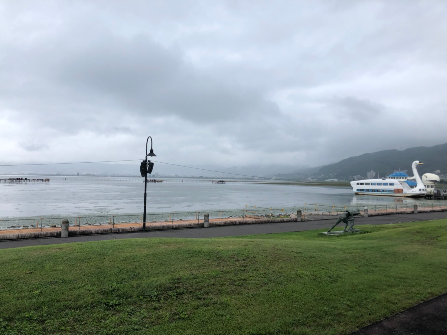 一晩だけとはいえお世話になった鷺の湯さんが名残惜しかったですが、とりあえず目の前の諏訪湖へ。