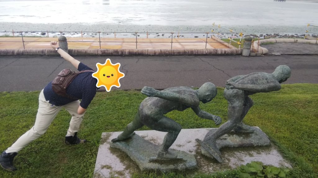 こちらがテンション上がりすぎて、スケートの像に混ざりだしたオッサンK。諏訪ってスケート有名なんですね!