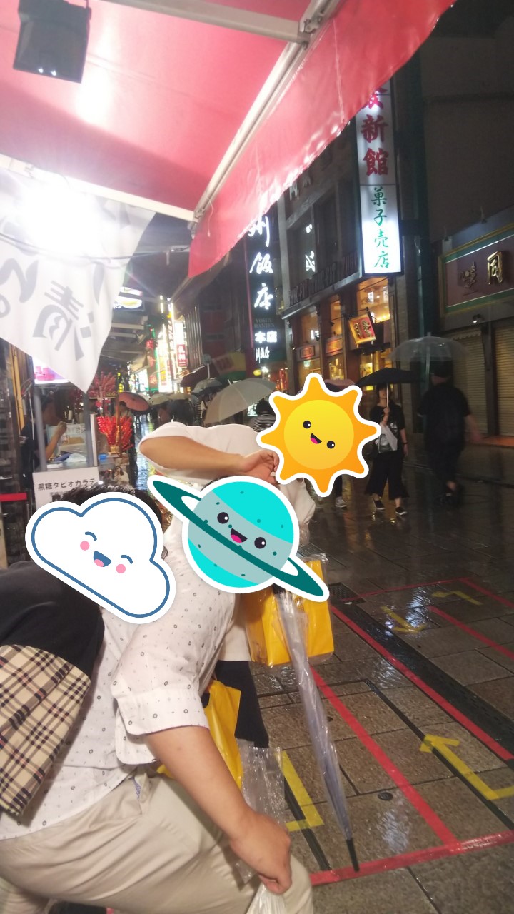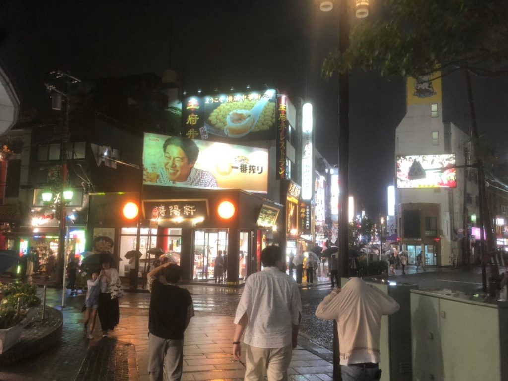 みんなで食べ歩きをしつつ、エンゲルが中華街の景色を撮ろうとしてるところをオッサン3人が邪魔してきたり、