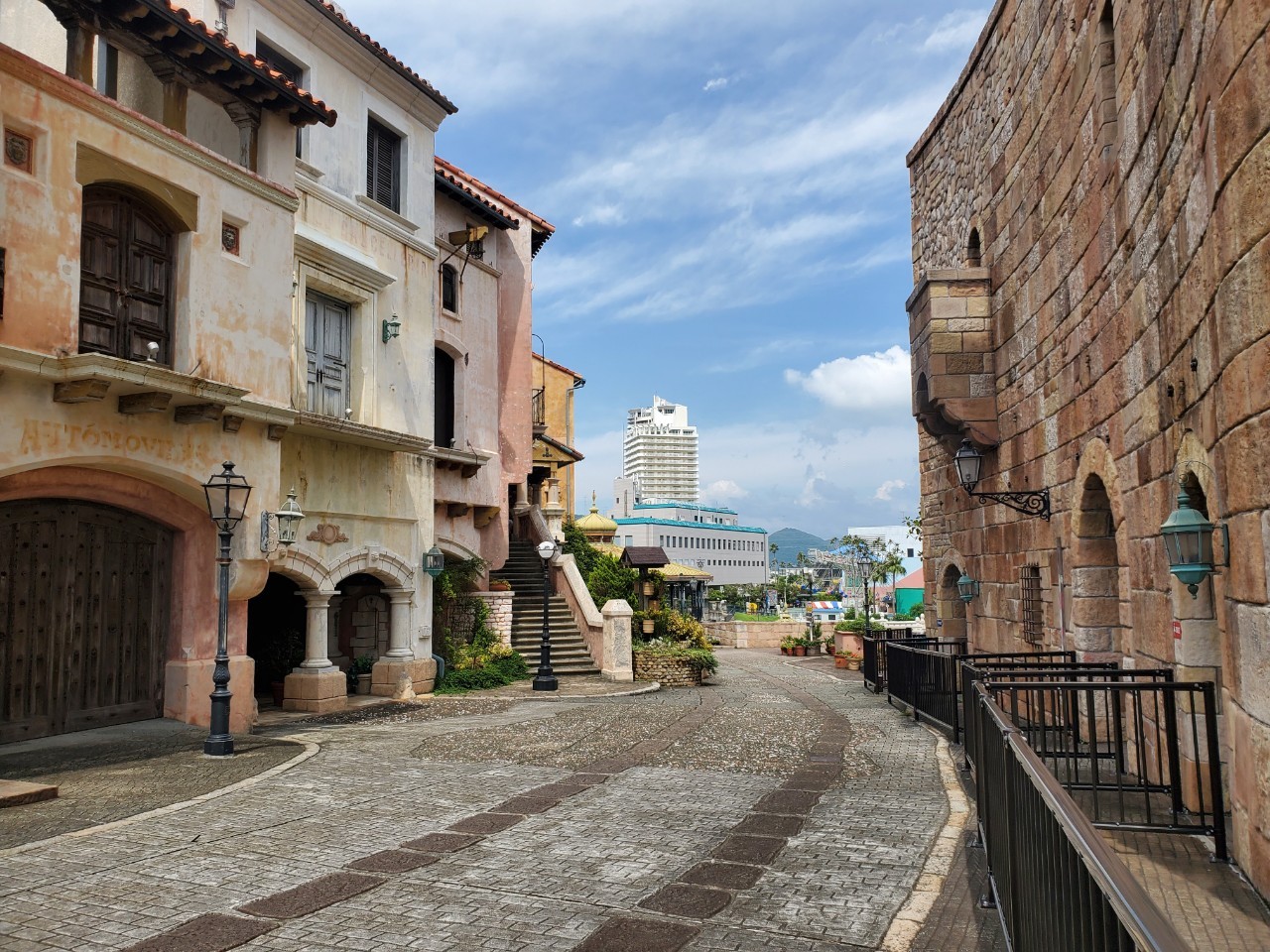 中世ヨーロッパの街並みを再現したというポルトヨーロッパの散策です。