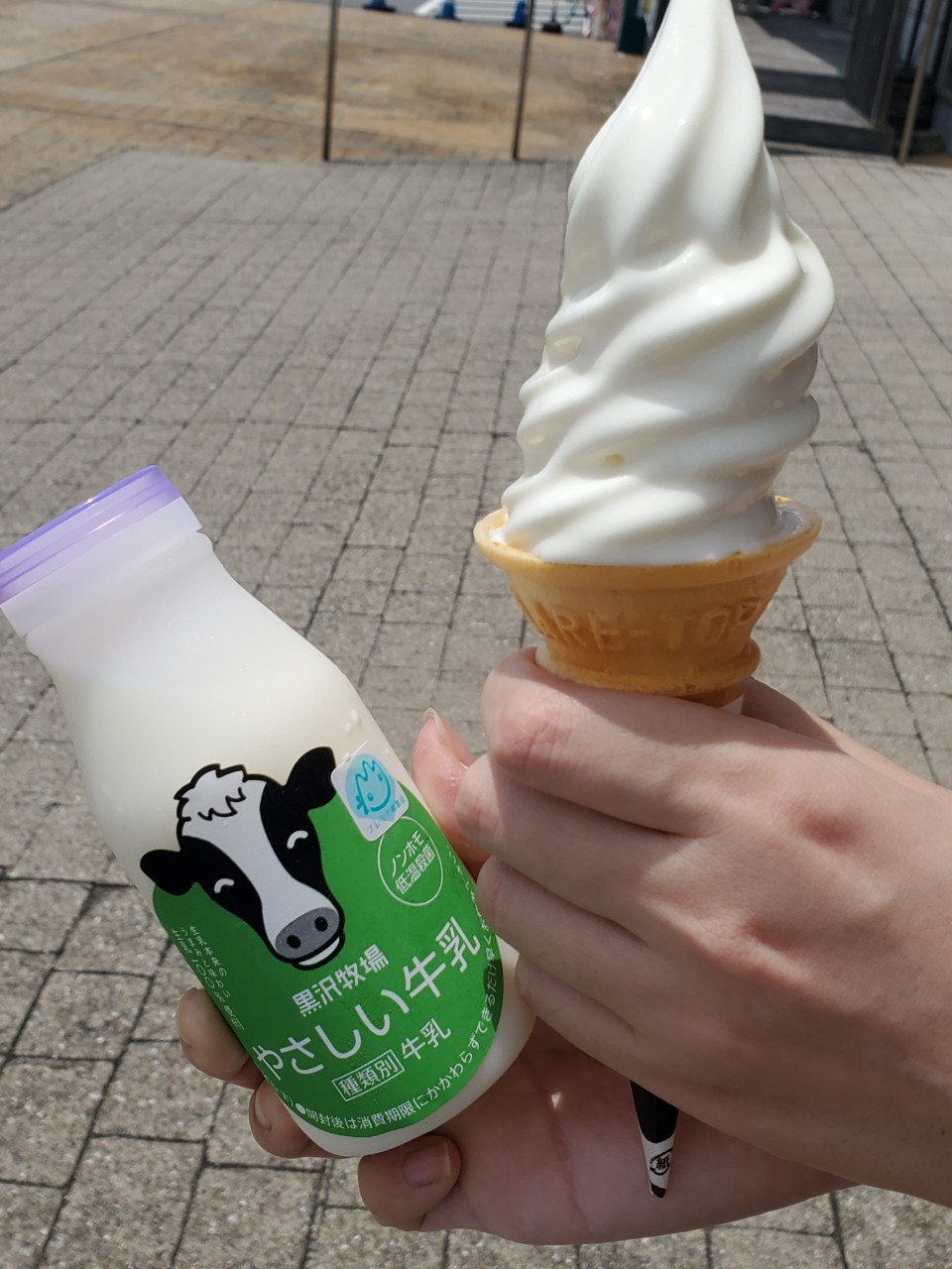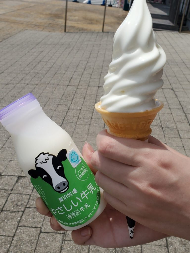 最後にデザートとして、紀ノ国フルーツ村というフルーツ販売所で牛乳とソフトクリームを購入。