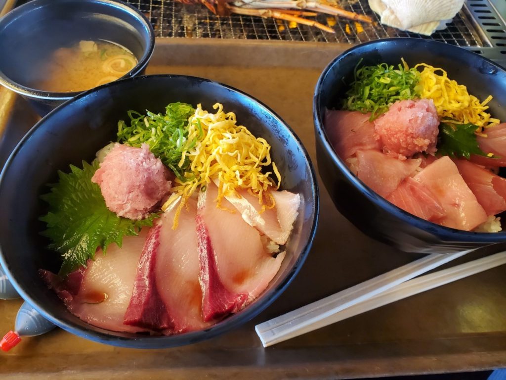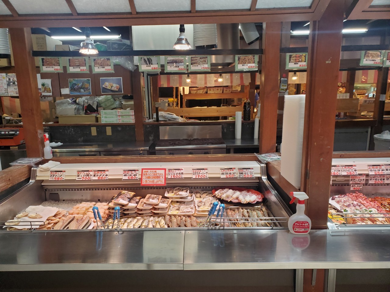 市場の中にバーベキュー用の材料があり、もちろん海鮮丼屋さんもございます。