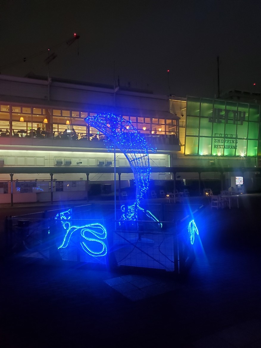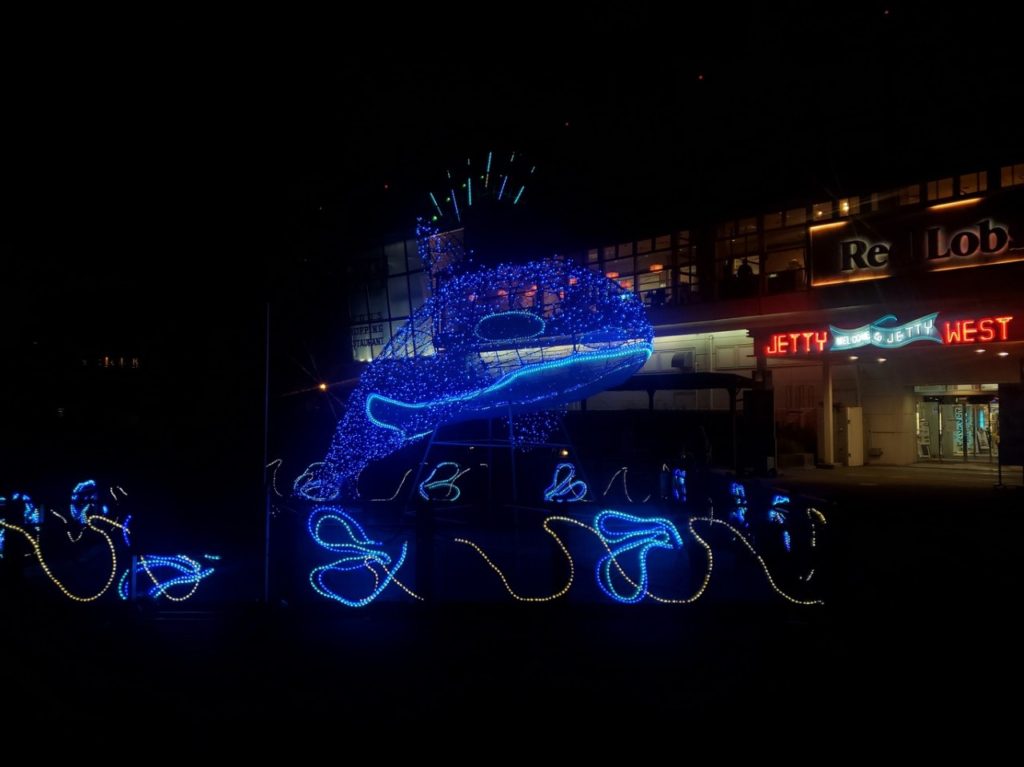 JETTYという複合レストランの正面には、エンゲルよりずっと大きなシャチとイルカの電飾があります。