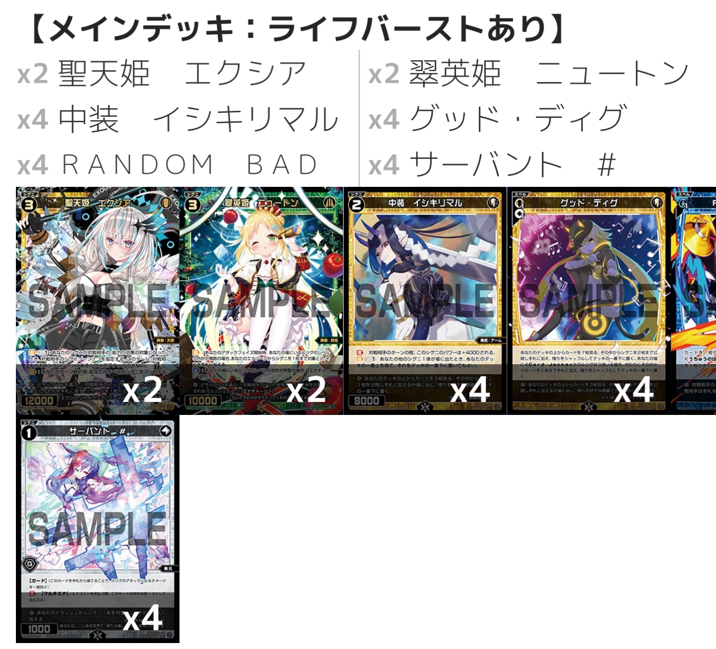 勝ちはしたもののLBゲー感強く、ランダムバッドくんが盾から2枚も捲れたのが大きかったです。