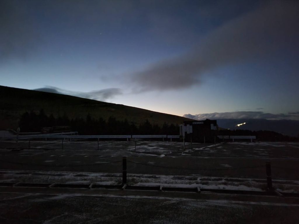しかも雑に暇だから登っていたんですが、周囲は明るいものの実はまだギリギリ夜明け前。