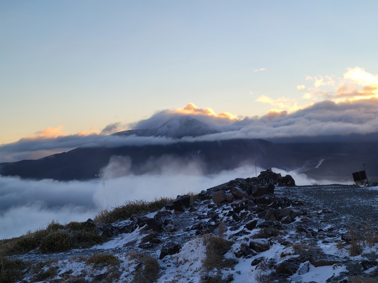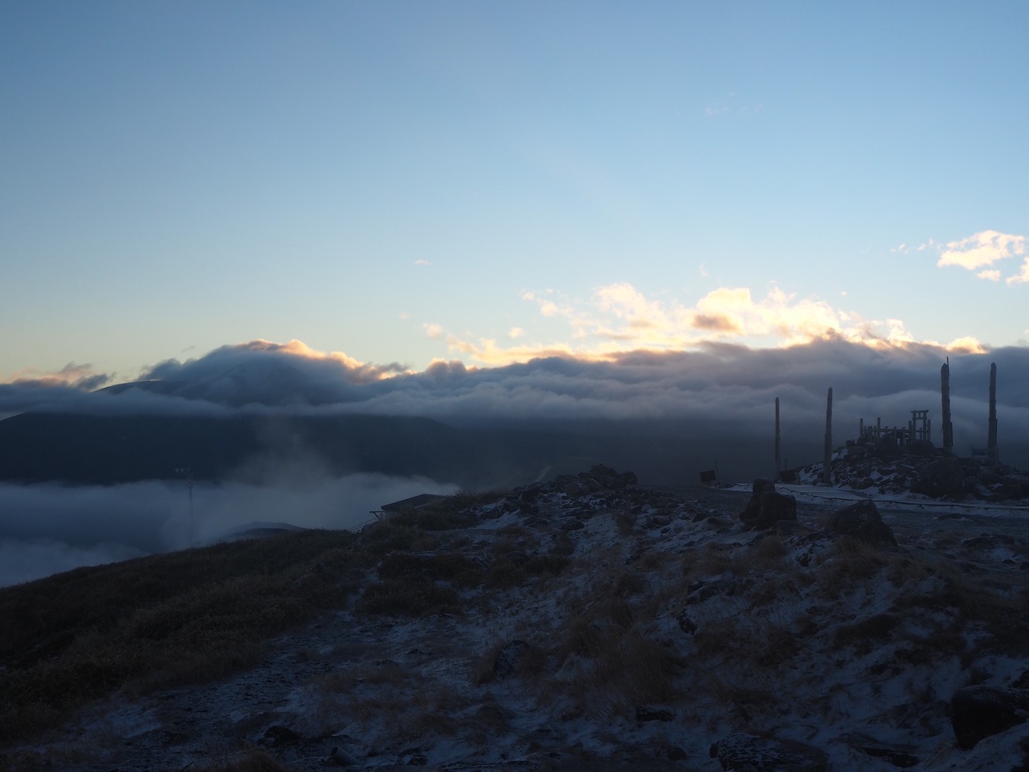 ただ明るくはなってきておりますが日差しもない、標高1925mの山頂。風を遮るものもありません。