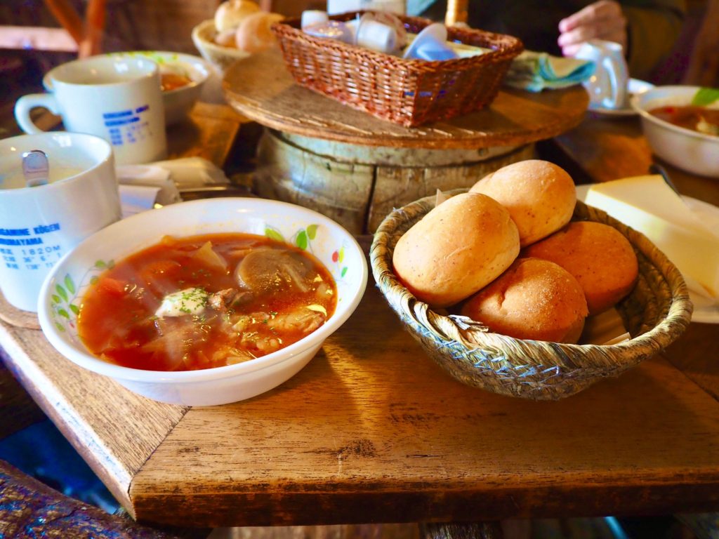 こことか手前の丸テーブルで、リンちゃんがボルシチを食べていたので感動しておりました。