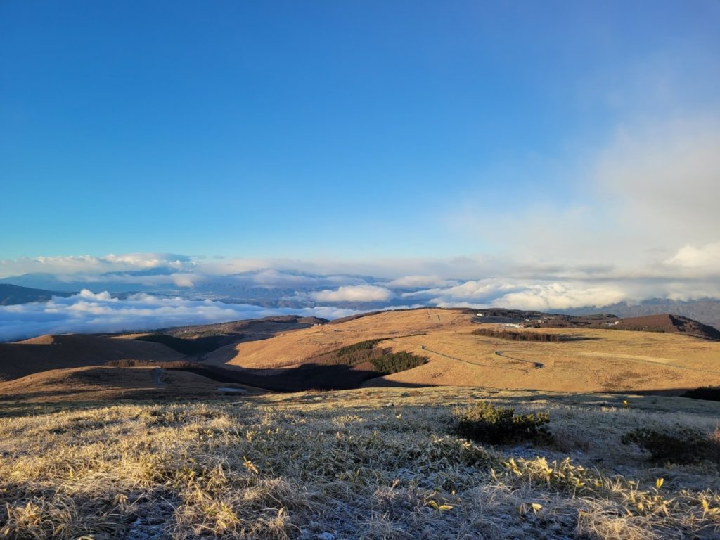 ・すぐそばに車山というのがあるので、ロープウェイで山頂まで行って景色を眺める。