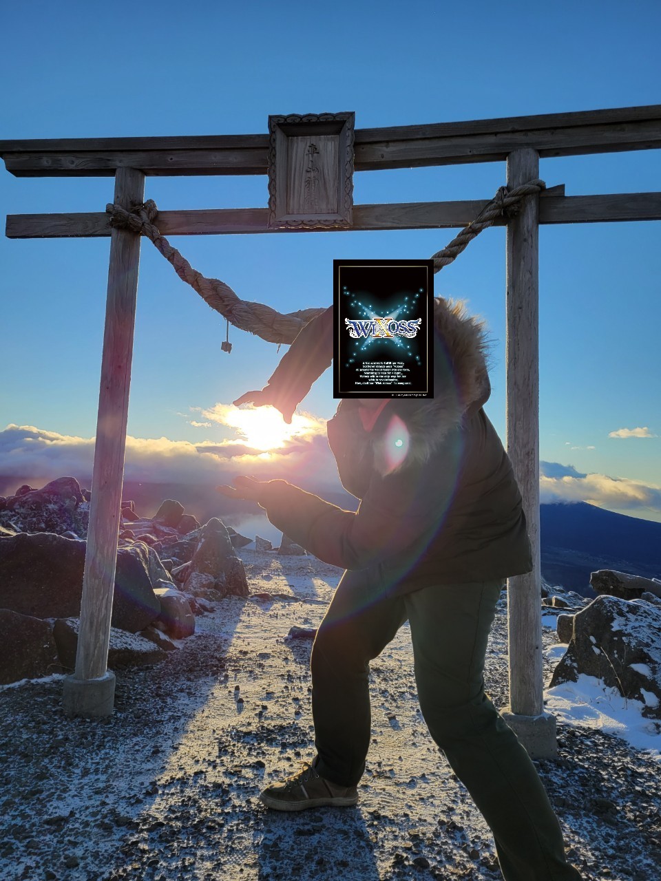日の出が見れてでテンション爆上がりなのは分かりますが、そのポーズはいかがなものかと。
