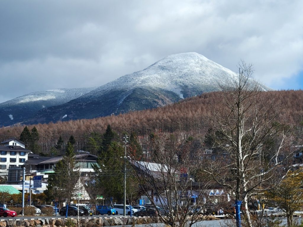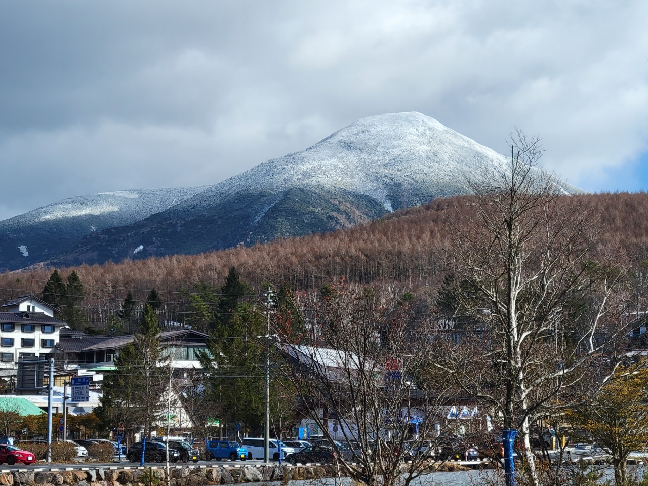 コンビニという日常と、雪化粧を施された山という非日常が混在していると不思議な気分になります。