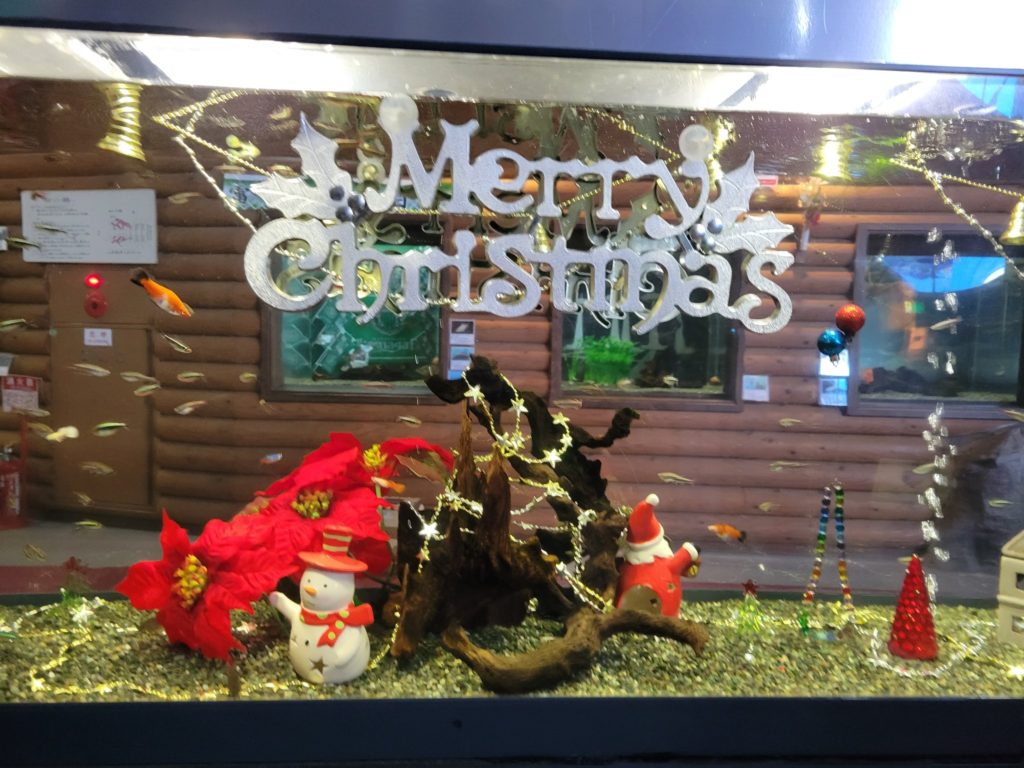 こちらはクリスマス仕様の水槽ですが、飾り付けがとても可愛いらしかったです。