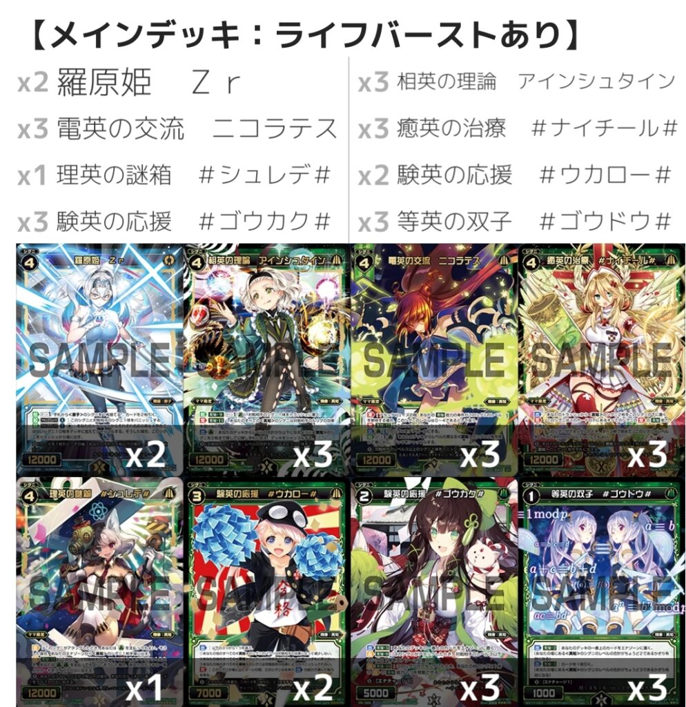 ルリグデッキに尺取りすぎましたが、メインデッキはZr除けば前回とそこまで変わっておりません。